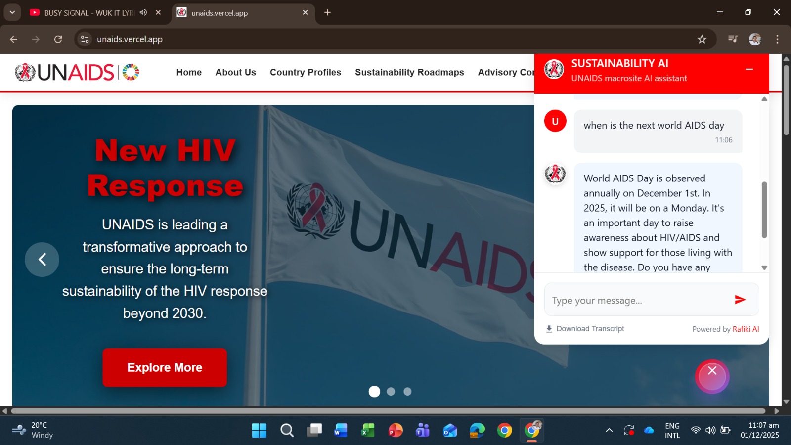 Full-stack United Nations microsite developed for the UNAIDS organisation to update, manage, and download country profiles and sustainability roadmaps, supported by a robust backend API and a role-based admin panel for data validation and publishing..